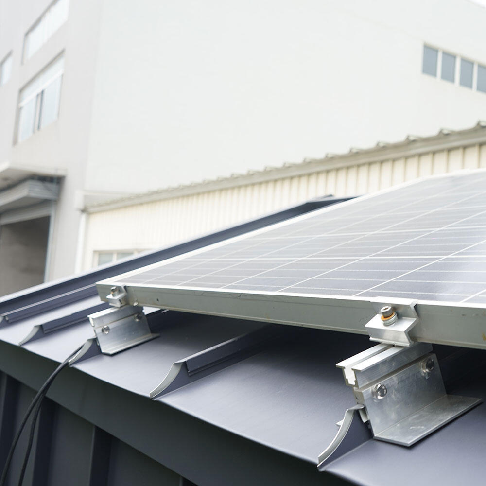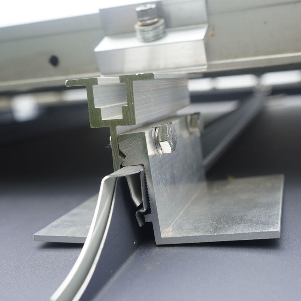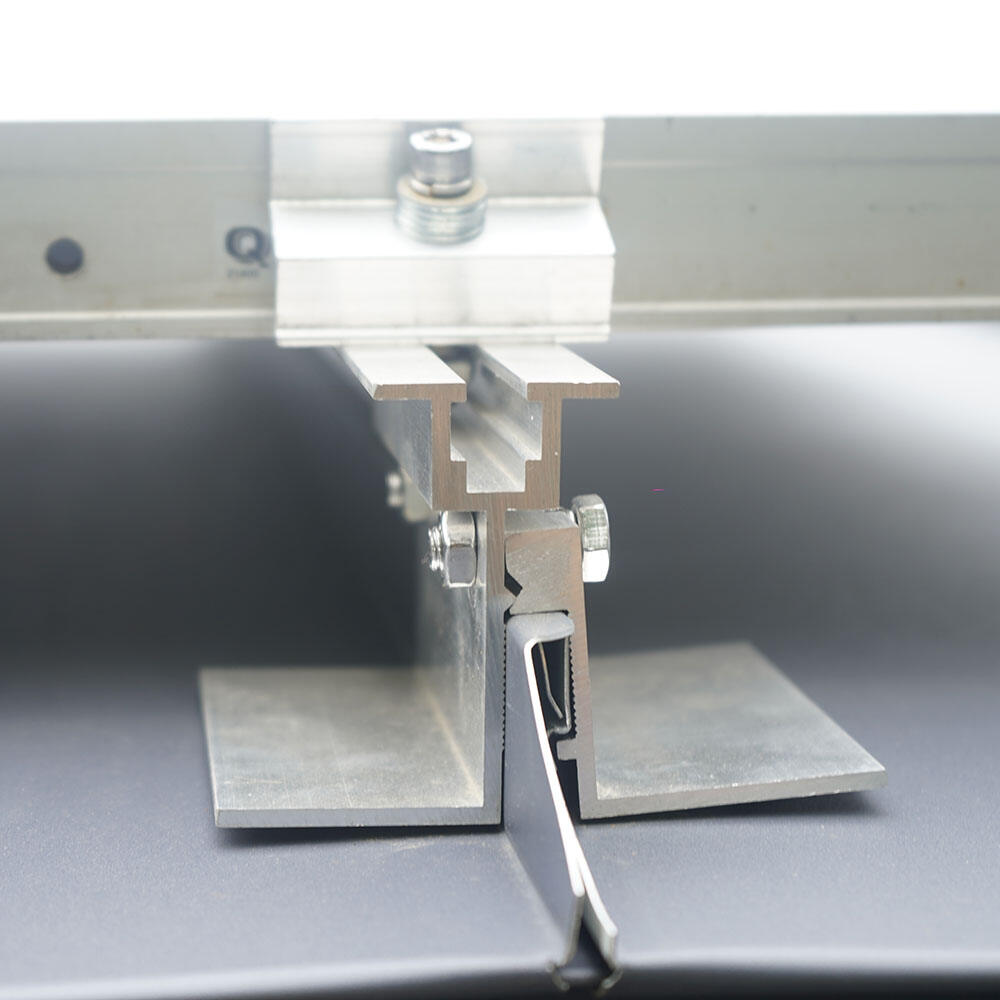 Installation is simple and convenient. As shown in the diagram, the clip can be directly secured to the seam of the roof panel. This mount does not allow for angle adjustment and must be installed parallel to the roof surface.