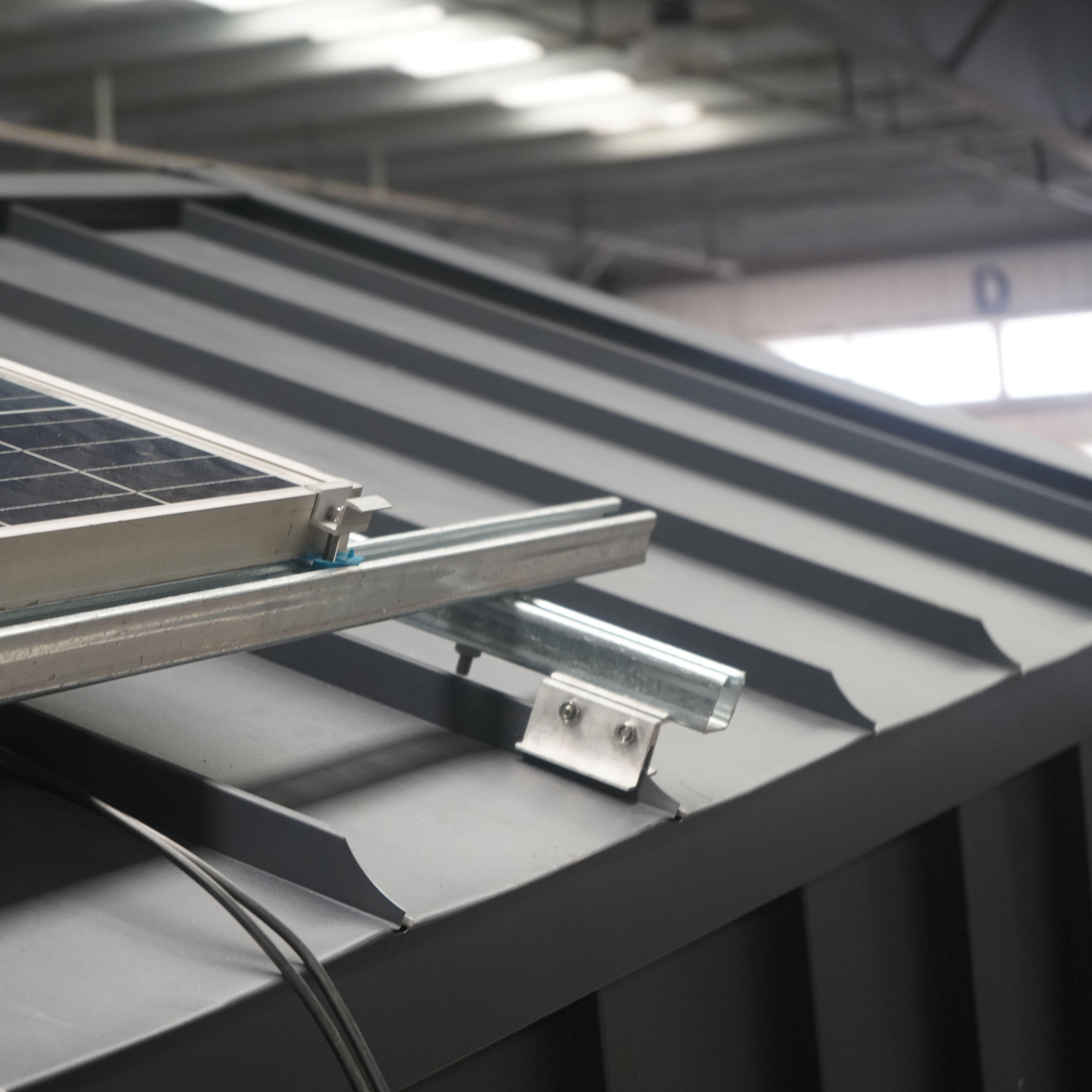 Standing seam metal tiles are made from galvanized steel or aluminum base plates, formed through a roll-forming process. They are available in a variety of colors and feature a modern design. We have developed the TE-B2-CL1 self-locking solar panel mount, specifically designed for standing seam metal roofs, to provide a perfect solar energy solution for your roofing system.